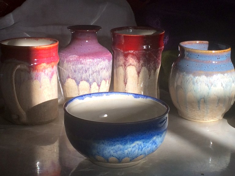 Along with the green cascading place setting, I experimented with a few other glazes paired up with the opaque sand as a base glaze.