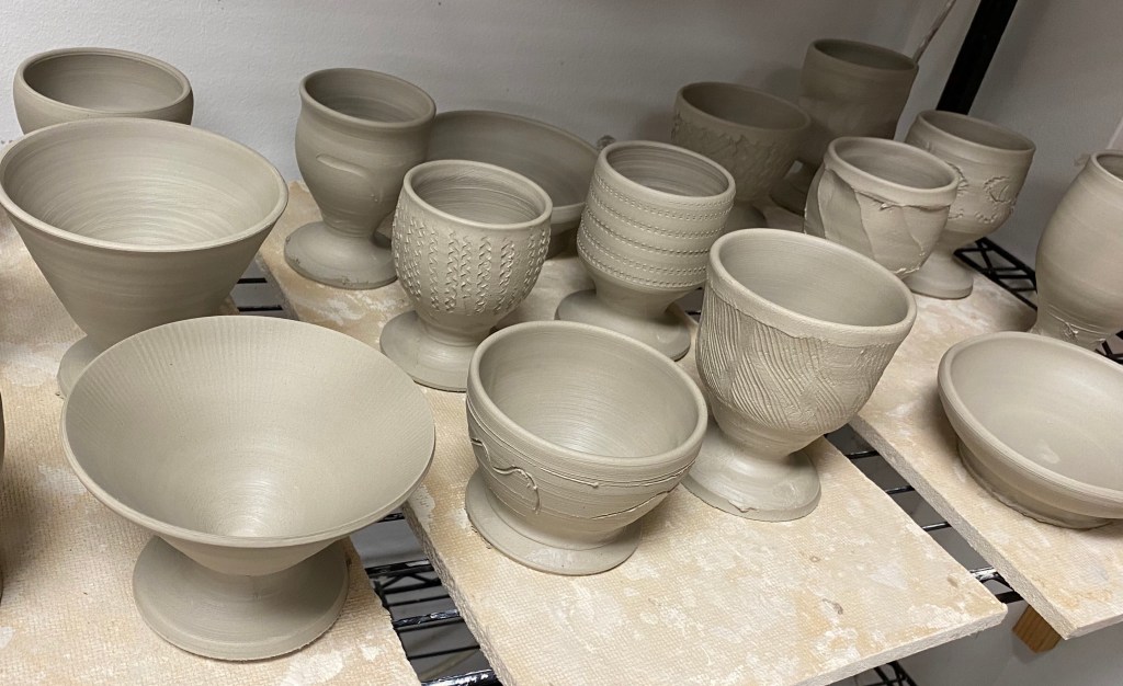 Decided to experiment with making stemmed vessels. I have a long way to go… I was beginning to see a bit of consistency (in the stem and foot at least) by the end of the night, did start experimenting with textures along the way, since these are sort of throwaway things.