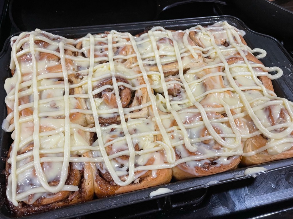 - for the 9”x13” pan in the picture, cut the roll into 12 pieces and arrange them in the pan.