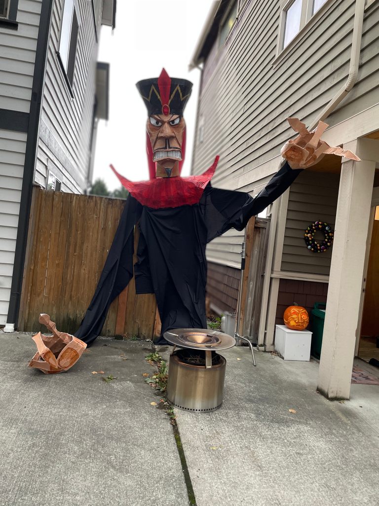 The last few years I’ve been fortunate to do (as my niece tends to refer to it) the most boring possible job for a well known entertainment company. For better or worse, I’m a long way away from the entertainment end of the company, but in the pre-pandemic times, they did a trick-or-treat session in the office for the other employees children. My first attempt was a gryphon type thing, 15 feet wide from wingtip to wingtip and stayed up for several months before the head admin made me remove it.